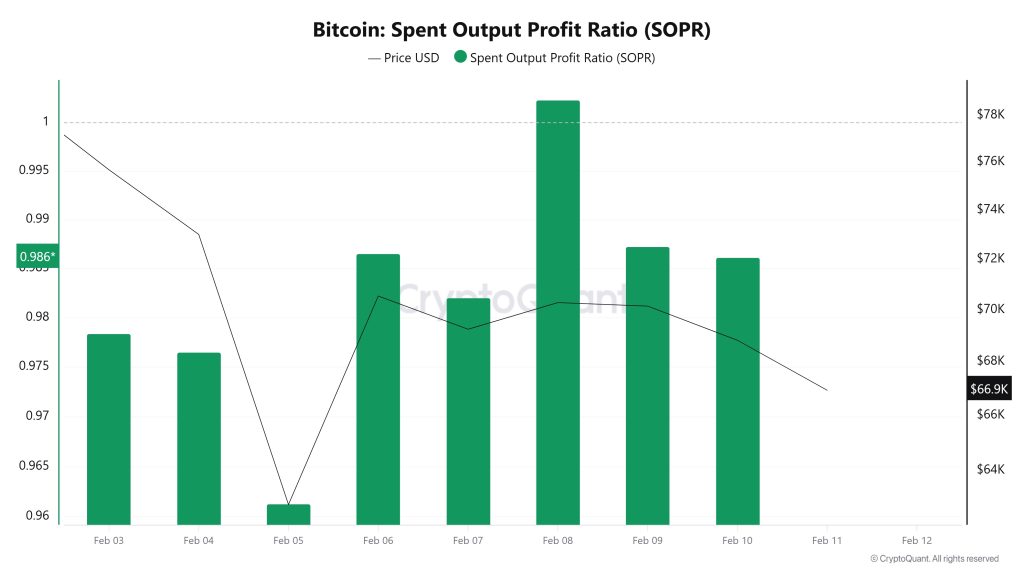 On February 4, while the Bitcoin price traded at $73,007, the SOPR metric was at 0.976. As of February 10, the Bitcoin price fell to $68,825, recording a 5.73% decline, while the SOPR metric rose to 0.986, recording a 1.02% increase. The SOPR remaining below 1 indicates that coins are changing hands at a loss on average, while the upward recovery signals a decrease in the intensity of loss-making sales and a greater number of break-even transactions. This outlook suggests that although selling pressure may persist in the short term, efforts to stabilize at the bottom may be gaining momentum.