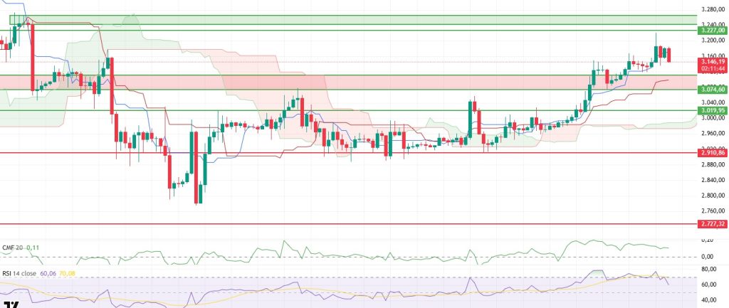 Despite continuing its upward trend during the day, the ETH price faced selling pressure at the $3,180 level. The pullback accelerated with the reaction from this area, and the price fell back below the $3,150 band. This movement indicates that the market has entered a natural balancing process after the strong rally seen on Friday and thereafter. The price retreating in a controlled manner rather than a sharp breakdown suggests that sellers are struggling to exert pressure.