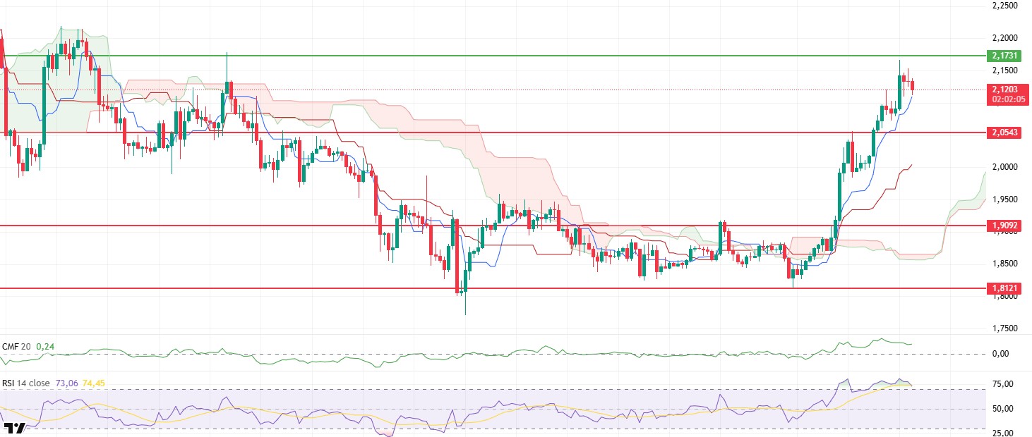 The technical outlook remains largely intact from the Ichimoku indicator perspective. Although the loss of the Tenkan level signals short-term weakness, the price is still above the Kumo cloud and the Kijun level remains valid. This structure indicates that the main trend has not yet broken down and that the pullback remains a limited correction. As long as pricing remains above the cloud, the technical picture continues to remain positive.