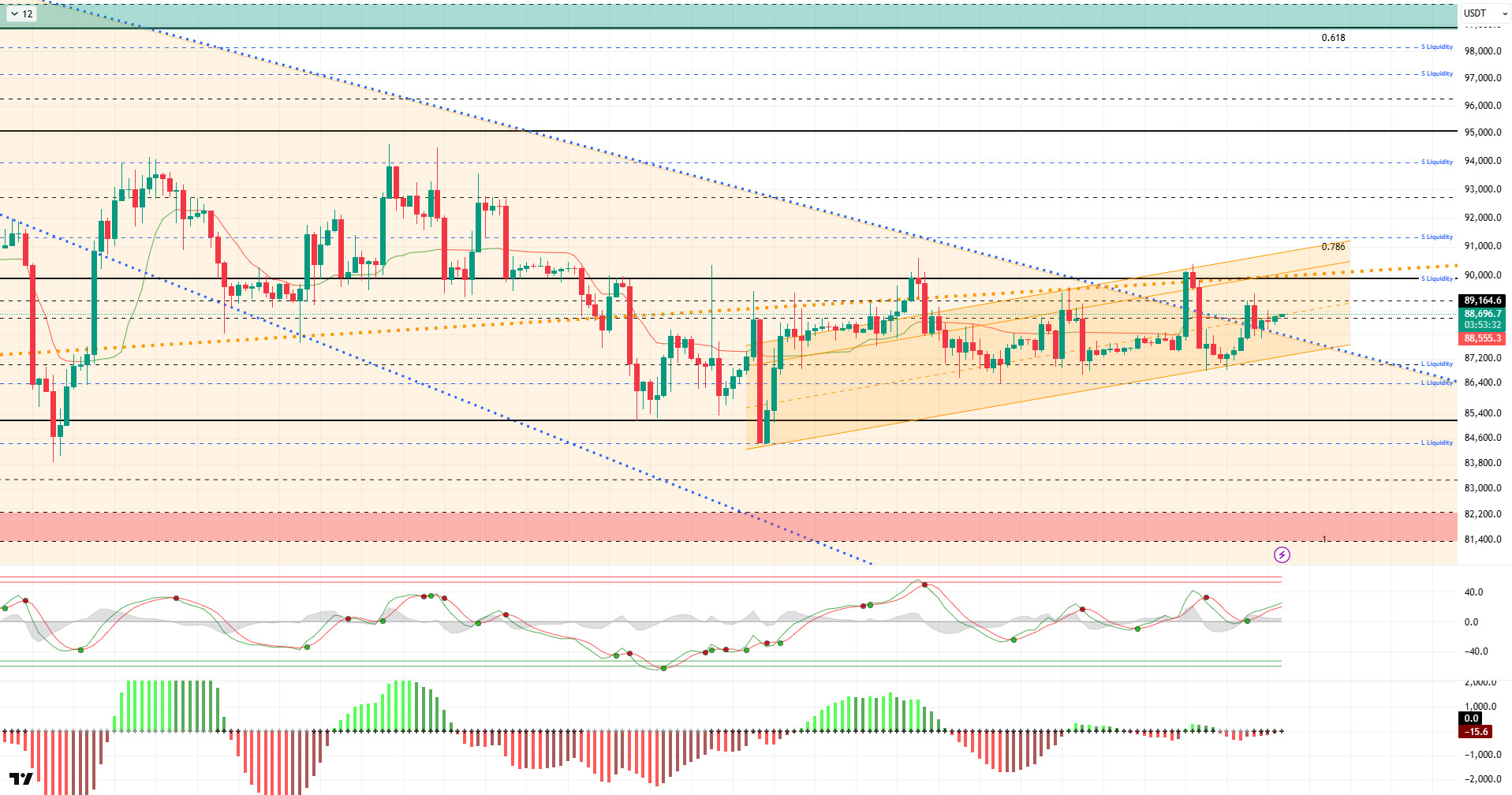 From a technical perspective, BTC continues to recover after testing the reference point of 90,000 and recording a significant decline. The price, which first fell and then entered a horizontal band, appears to be attempting to form a minor upward channel. Indeed, the price, which broke out of the falling orange band it started since the ATH level, continues to use this area as support. As BTC prepares to close the year negatively with a 5.28% decline on the last day of the year, we will follow whether the price breaks through the 90,000 barrier in the first days of the new year.