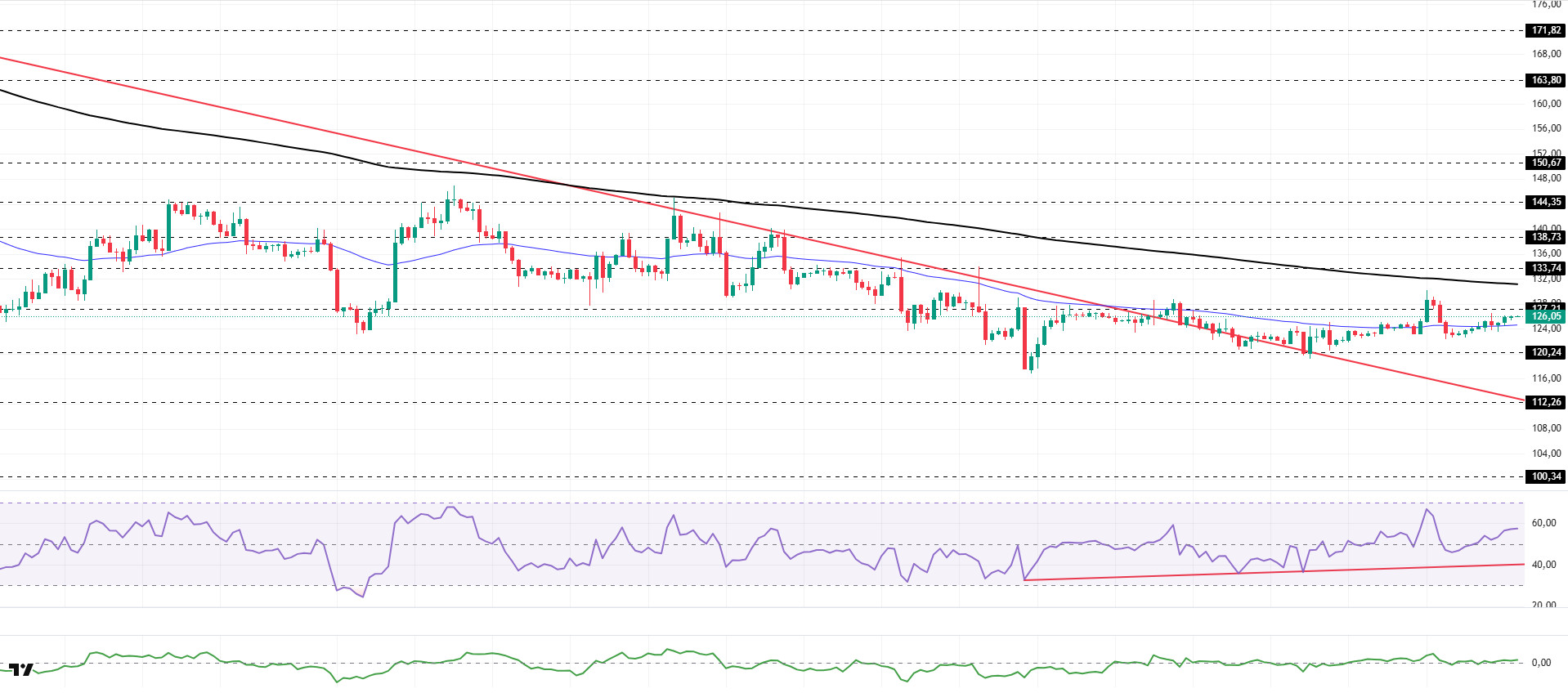 The SOL price showed a slight increase. The asset continued to trade in the upper region of the downward trend that began on October 8. Testing the strong resistance level of $127.21, the price moved to the lower region of the 50 EMA (Blue Line) moving average but has now risen from there and started trading above the 50 EMA moving average. If the rise continues, the 200 EMA (Black Line) moving average may act as resistance. In case of a pullback, the $120.24 level may act as support.