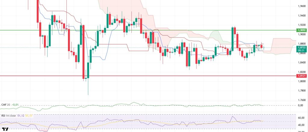 The price remained calm throughout the day on the XRP side and continued its movement within a narrow band, holding around $1.87. Neither upward attempts gained momentum nor did sales become apparent. This picture shows that a wait-and-see mood still prevails in the market and that no strong decision has been made in the short term. Low volume also supports this stagnation.
