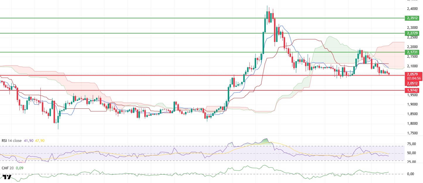 There is no significant deterioration en the main picture el the Ichimoku indicator. Although the loss of the Tenkan level increases pressure en the short term, the price maintains its position above the Kumo cloud. The Kijun line providing support below suggests that the main trend has not completely weakened. The technical structure remains positive en this state.