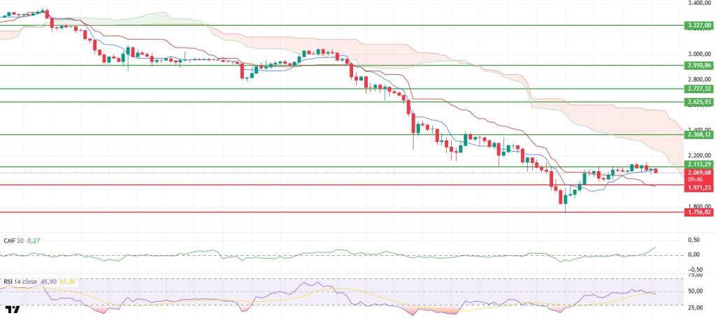 The ETH price remained under buyer control throughout the weekend, rising to the $2,150 level. This movement showed a clear recovery en the market following the sharp sell-off the previous week. However, after the weekly close, the price retreated again as the $2,113 level could not be maintained, easing back to around $2,070. The current outlook shows that the potential for a rebound continues, but critical resistances have not yet been permanently broken.