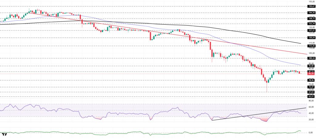 On the 4-hora chart, the 50 EMA (Exponential Moving Average – Blue Line) remains below the 200 EMA (Black Line). This indicates that the medium-term downtrend continues. At the same time, the price being below both moving averages shows that the asset is trending downward en the short term. The Chaikin Money Flow (CMF-20) has moved into positive territory. However, a decrease en money inflows could push the CMF into negative territory. The Relative Strength Index (RSI-14) rose from oversold territory to the neutral level of negative territory. At the same time, it remained below the rising line el January 31. This signaled that selling pressure continued. If there is an uptrend due to macroeconomic data or positive news related to the Solana ecosystem, the $100.34 level stands out as a strong resistance point. If this level is broken upwards, the uptrend is expected to continue. If there are pullbacks due to developments en the opposite direction or profit-taking, it could test the $72.47 level. A decline to these support levels could increase buying momentum, presenting a potential upside opportunity.