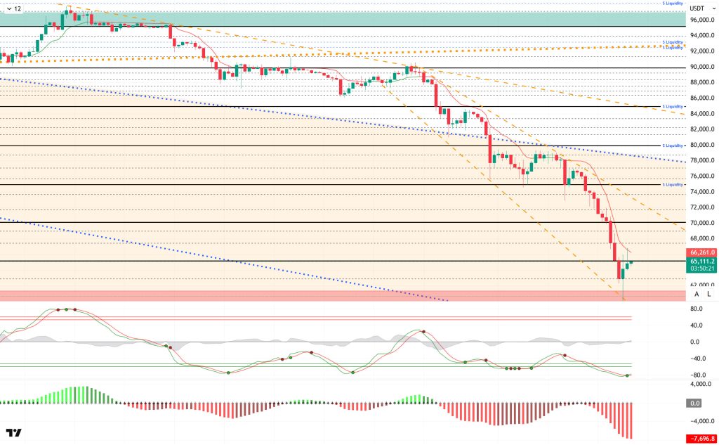From a technical perspective, BTC recorded a positive candle after eleven consecutive negative candles over a four-hora period. During this process, the price fell to the 60,000 level, the first time it has fallen to this level since October 2024. After testing the last minor peak level of 98,000, the price entered a downtrend and failed to record an upward reaction. At the time of writing, the price has recovered somewhat and is testing the 65,000 level. For a new uptrend, the price needs to break above the 70,000 level, while prices below this level could bring new price discoveries with selling pressure.