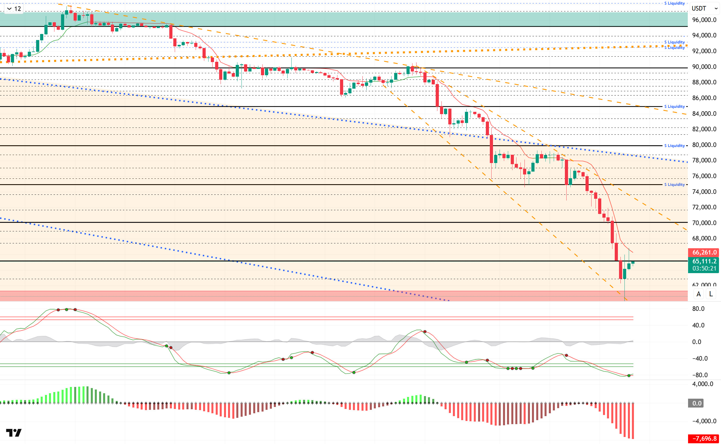 When examining liquidation data, buy levels are being liquidated en the medium and long term, with accumulation finally occurring again at the 60,000 level. The sell level, el the other hand, has increased en intensity, creating accumulation en the 72,000–75,000 band en the short term. In the medium term, the 78,000–79,000 level stands out as a liquidity zone.
