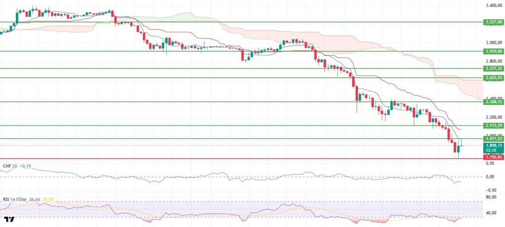 In the overall assessment, the most critical threshold for the day remains at the $1,756 level. If this support fails to hold, downward pressure could accelerate again, bringing lower levels into focus at. Conversely, if the price manages to hold above $1,756, it could pave the way for new rebound attempts en the short term, but for the trend to turn positive, the $1,971 region must first be clearly surpassed.
