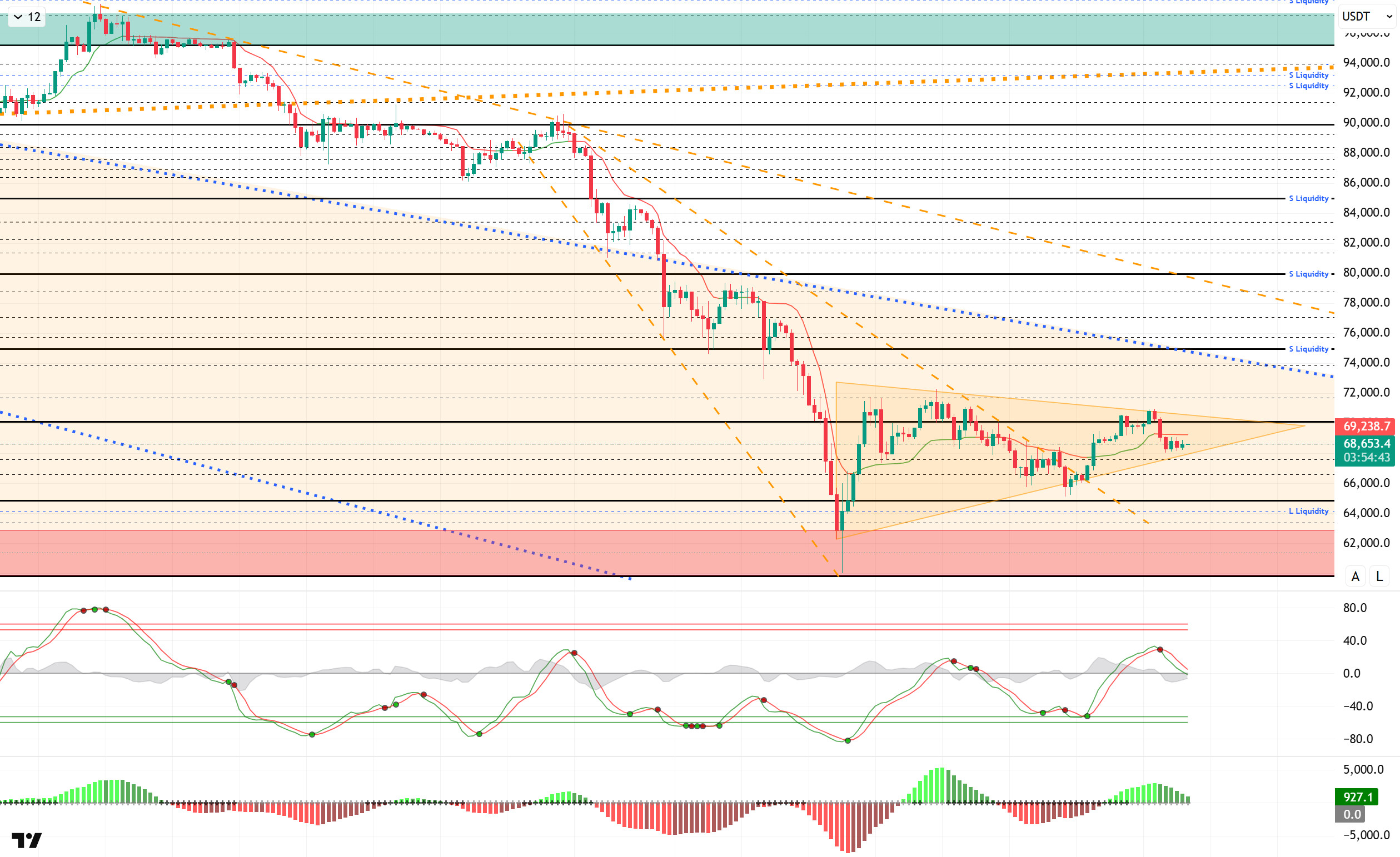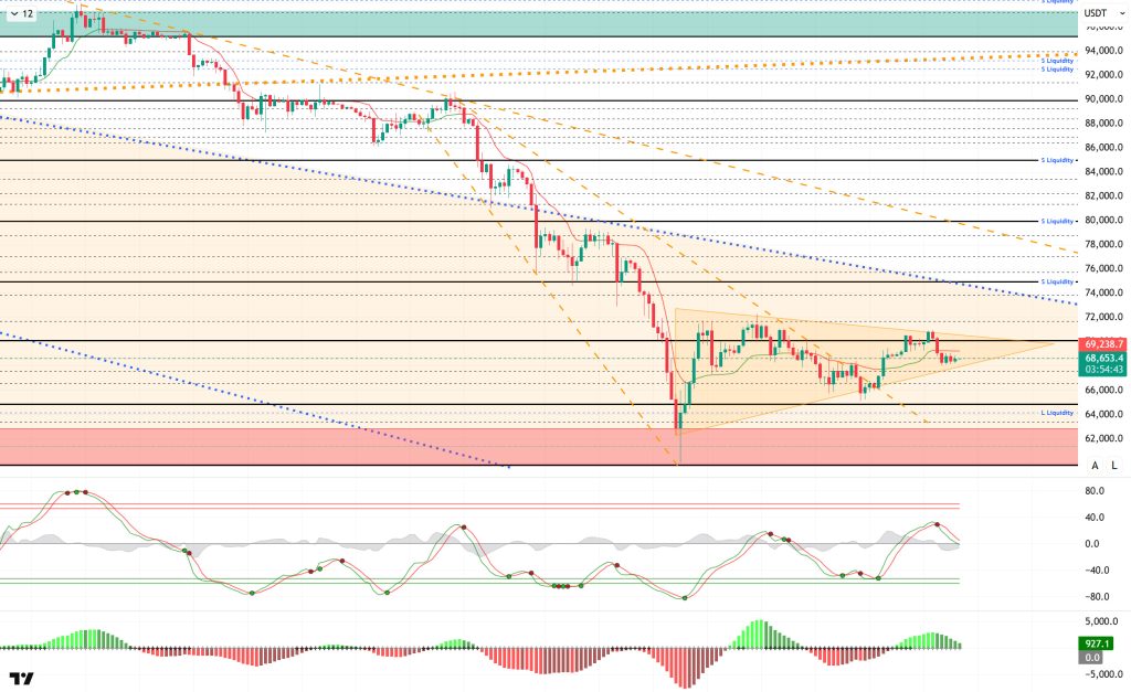 Los mercados globales están entrando en una semana crítica donde las actas de la Fed y los datos del PCE subyacente serán decisivos. Mientras que los datos de crecimiento e inflación en EE. UU. se están monitoreando de cerca en términos de las expectativas de recortes de tasas de interés, el fuerte panorama macroeconómico apoya un escenario de aterrizaje suave. Sin embargo, la inflación subyacente sigue flotando por encima del objetivo y las incertidumbres respecto a los aranceles mantienen una postura cautelosa. En el frente cripto, los mensajes de Strategy Management sobre la resiliencia del balance y los planes de bonos a largo plazo han reavivado las discusiones sobre el apetito por el riesgo y el apalancamiento. Técnicamente, BTC ganó impulso ascendente al formar su segundo mínimo creciente en el nivel de 65,000. Con este impulso, el precio subió por encima del nivel de 70,000 una vez más, formó un pico descendente aquí y retrocedió ligeramente. BTC, que continúa negociándose dentro del triángulo simétrico que ha formado, nos dará una idea sobre la dirección del precio de ruptura. En este contexto, mientras que el nivel de 70,000 trae una ruptura al alza, el nivel de 66,500 emerge como el área de prueba para rupturas a la baja. Los indicadores técnicos muestran que el oscilador Wave Trend (WT) cruzó la banda media del canal paralelo en línea con las señales de compra que dio en la zona de sobreventa y ahora ha vuelto a una señal de venta. El histograma en el indicador Squeeze Momentum (SM) está experimentando una pérdida de impulso en la zona positiva nuevamente. La Media Móvil de Kaufman (KAMA) se está negociando actualmente por encima del precio en el nivel de 69,243 $. Al examinar los datos de liquidación, el nivel de compra se convirtió primero en la zona objetivo del precio, luego el nivel de venta fue liquidado con el aumento registrado a 68,000 – 70,000. Con el último aumento, las transacciones registradas con intensidad en el nivel de 68,300 fueron liquidadas. Al observar los niveles de liquidez, la banda de 71,000–72,000 se destaca a corto plazo en el lado de venta, mientras que se registra una intensidad fragmentada dentro de la banda de 65,000–68,000.En resumen, los datos macroeconómicos y las actas del FOMC se monitorearán en el frente de EE. UU. esta semana, mientras que los desarrollos geopolíticos que involucran a Irán, EE. UU. y las decisiones arancelarias darán forma a la dirección del mercado. Mientras que los niveles de compra/venta a corto plazo están dirigidos en los datos de liquidez, las transacciones de venta a largo plazo mantienen su intensidad.Técnicamente, BTC comenzó el nuevo año con un fuerte impulso, probó el nivel de 98,000, luego enfrentó una fuerte presión de venta y retrocedió al nivel de 60,000. Tras este movimiento, todos los cierres mensuales desde septiembre han sido negativos. Históricamente, BTC no ha tenido cierres negativos consecutivos en enero y febrero, pero continúa su desempeño negativo en febrero. Observando la estructura técnica actual, después de formar un fondo ascendente en el nivel de 65,000, el precio probó los niveles de 70,000. En la siguiente etapa, la ruptura en el precio con su estructura de triángulo simétrico nos dará una idea sobre la dirección. Soportes:67,400 – 66,500 – 65,000Resistencias:68,600 – 70,000 – 71,600