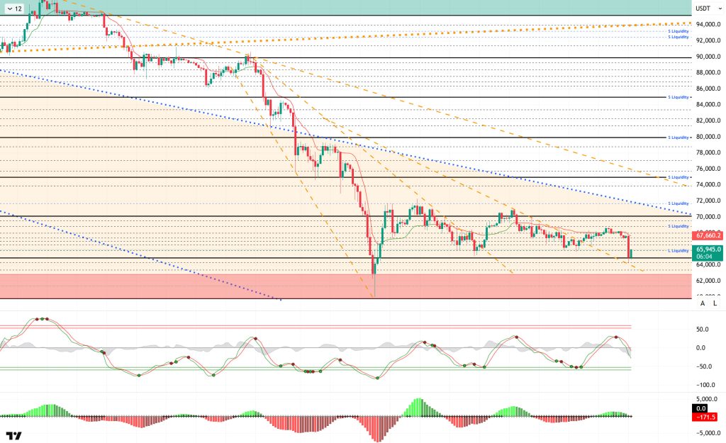 In summary, Trump’s tariffs have been canceled. Tensions between the US and Iran are escalating to an operational level. Negotiations continue el the Russia-Ukraine front. CME data points to a medium-term shift en direction.In technical terms, BTC started the new year with strong momentum, tested the 98,000 level, and then encountered heavy selling pressure, retreating to the 60,000 level. Following this movement, all monthly closings after September were negative, and BTC, which historically did not close negatively en January and February, continues its negative performance en February.Looking at the current technical structure, the price continues to move within a horizontal band, striving to hold above the 65,000 level. If this level is not lost, the price will continue to target the 70,000 level.