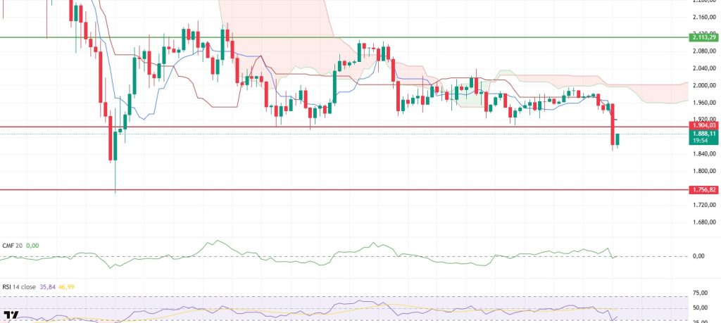 The Ichimoku indicator has once again turned distinctly negative. The price losing the Tenkan and Kijun levels weakens the short-term structure, while the downward slope at these two levels confirms increased technical pressure. The fact that the Kumo cloud remains unbroken indicates that the main trend remains downward.