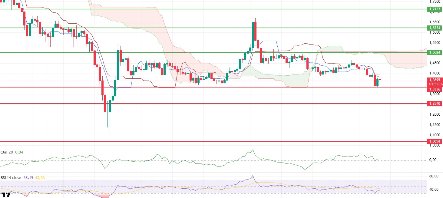 After showing a weak and flat performance over the weekend, the XRP price retreated to the critical $1.33 support level following the weekly close. With buying activity emerging from this region, the price appears to have rebounded to the $1.37 level. While the reaction from lower levels indicates that selling pressure has not fully taken control, the overall structure remains fragile.
