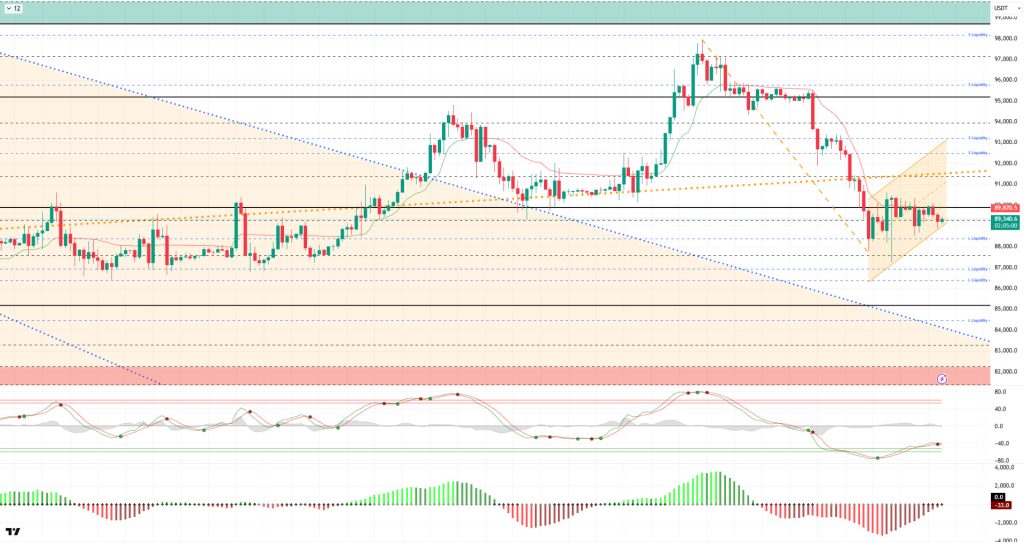 From a technical perspective, after losing the upward channel it had captured, BTC recorded a gradual decline, falling back to the 87,000 level. From here, the price, which has seen limited rebound rallies, has not yet achieved a clear break above the 90,000 level. The price’s relatively weak movements have formed a reverse flag pattern. In the next phase, the 90,000 reference level will be followed por the major upward trend line at 91,400 as a critical resistance area. Closings above this level could break the structure and pave the way for a new upward movement. In this regard, liquidity areas will be decisive. Otherwise, the impact of selling pressure may increase en the event of a possible rejection.