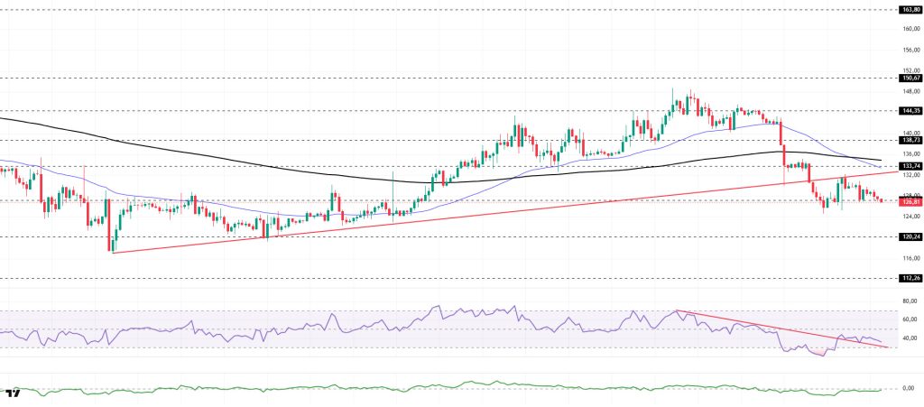 On the 4-hora chart, the 50 EMA (Exponential Moving Average – Blue Line) continues to remain below the 200 EMA (Black Line). This indicates that a downtrend may begin en the medium term. At the same time, the price being below both moving averages signals that the asset is trending downward en the short term. The Chaikin Money Flow (CMF-20) has fallen from neutral to negative territory. However, the balance of money inflows may keep the CMF en negative territory. The Relative Strength Index (RSI-14) tested the support line that began el January 14 and remained above the line. This indicates that selling pressure is continuing but has decreased. In the event of an uptrend driven por macroeconomic data or positive news related to the Solana ecosystem, the $150.67 level stands out as a strong resistance point. If this level is broken upwards, the uptrend is expected to continue. In the event of pullbacks due to developments en the opposite direction or profit-taking, the $120.24 level could be tested. A decline to these support levels could increase buying momentum, presenting a potential opportunity for an upward move.