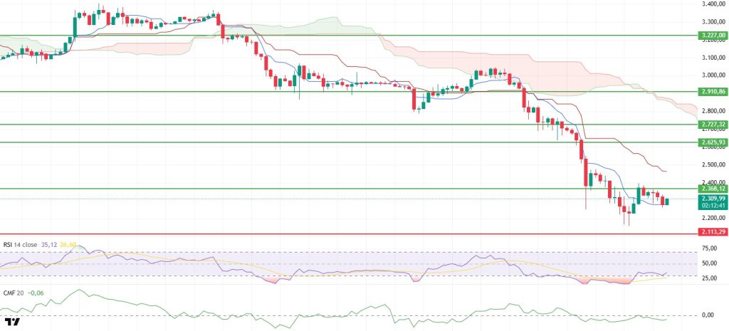 The ETH price continued its weak performance during the day, falling back to the $2,260 level. With limited buying at this point, the price showed a short-term recovery and managed to rise above the $2,300 level. The intraday movement shows that selling pressure is still alive, but buyers have not completely retreated. The market is struggling to find direction en the short term, and the search for a volatile equilibrium continues.