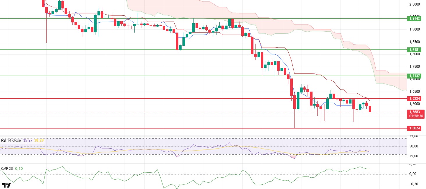 Critical thresholds are clear en the overall picture. The price may retest the $1.50 support zone during the day. Falling below this level could trigger more severe selling. Conversely, a clear retake of the $1.62 level could break the current weak structure and cause the trend to show an upward bias en the short term.