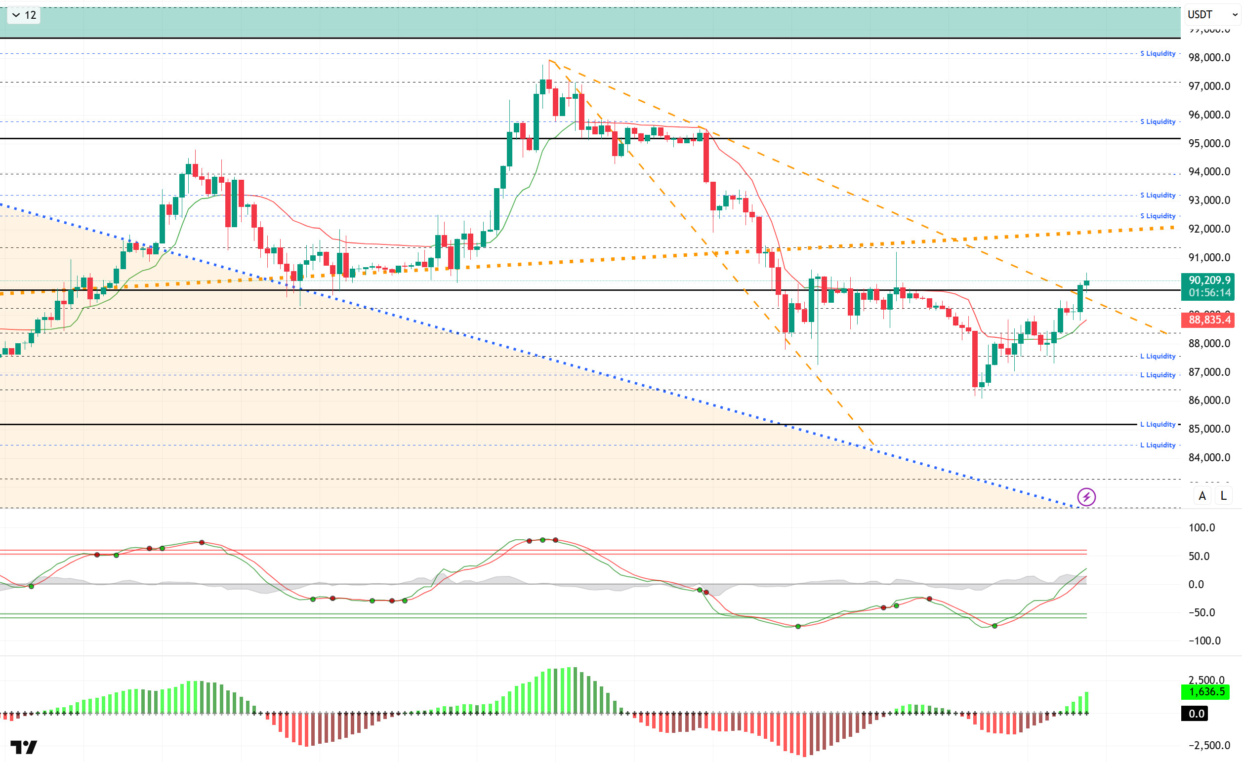 From a technical perspective, BTC had started to challenge the 90,000 level en the previous analysis. At the time of writing, the price has surpassed this level and reached 90,300. With this movement, the price broke the minor downtrend and closed above this level for four horas. In the next stage, the major uptrend line will be followed for the start of a new uptrend, and momentum may increase if this level is exceeded. While volatility is expected to increase with rising volume, attention should be paid to ensure that the breakouts are not fake.