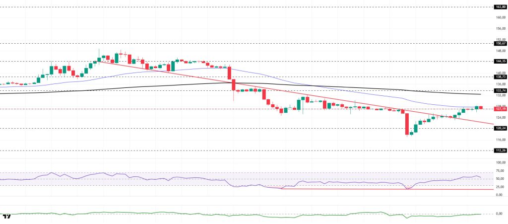 On the 4-hora chart, the 50 EMA (Exponential Moving Average – Blue Line) continues to be below the 200 EMA (Black Line). This indicates that a downtrend may begin en the medium term. At the same time, the price being below both moving averages shows that the asset is trending downward en the short term. The Chaikin Money Flow (CMF-20) rose from negative territory to neutral. However, the balance of money inflows and outflows may keep the CMF at this level. The Relative Strength Index (RSI-14) rose from near neutral en negative territory to the middle of positive territory. At the same time, it continued to remain en the upper region of the upward trend that began el January 20. This signaled the formation of buying pressure. If there is an increase due to macroeconomic data or positive news related to the Solana ecosystem, the $150.67 level stands out as a strong resistance point. If this level is broken upwards, the increase is expected to continue. If there are pullbacks due to developments en the opposite direction or profit-taking, it could test the $112.26 level. A decline to these support levels could increase buying momentum, presenting a potential opportunity for an uptrend.