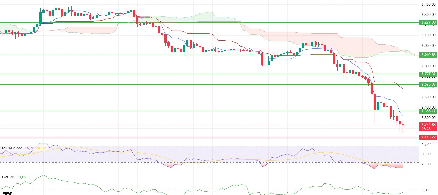 In the overall assessment, two critical thresholds stand out for the day. If the price holds above the $2,113 level, a rebound toward the $2,368 region, which is the 0.236 Fibonacci retracement level, could be seen. Such a move could provide short-term relief but would not completely eliminate the risk of a decline. Conversely, a break below the $2,113 level could trigger more aggressive selling and drag the price towards lower support levels. At this stage, the market remains en a risky zone.