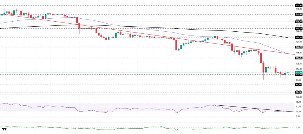 On the 4-hora chart, the 50 EMA (Exponential Moving Average – Blue Line) continues to be below the 200 EMA (Black Line). This indicates that a downtrend may begin en the medium term. At the same time, the price being below both moving averages shows that the asset is trending downward en the short term. The Chaikin Money Flow (CMF-20) has risen into positive territory. However, a decrease en money inflows could pull the CMF back into negative territory. The Relative Strength Index (RSI-14) has seen a slight rise from the oversold zone. This could trigger profit-taking, causing the price to react from this level. At the same time, it is testing the downward trend el January 28 as resistance. If it breaks this level, buying pressure may occur. In the event of an uptrend due to macroeconomic data or positive news related to the Solana ecosystem, the $120.24 level stands out as a strong resistance point. If this level is broken upwards, the uptrend is expected to continue. If there are pullbacks due to developments en the opposite direction or profit-taking, it may test the $87.23 level. If it falls back to these support levels, an increase en buying momentum could present a potential upside opportunity.