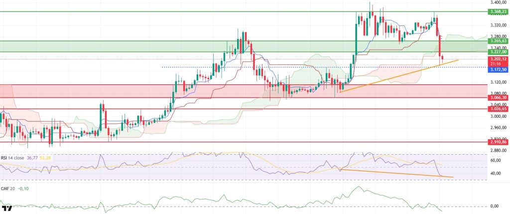 There is a sharp cooling el the momentum side. The Relative Strength Index (RSI) has fallen to 37 levels. Despite this, the positive divergence forming el the RSI side is noteworthy. If the ETH price can hold at the $3,200 level, this divergence could strengthen the possibility of a short-term rebound.