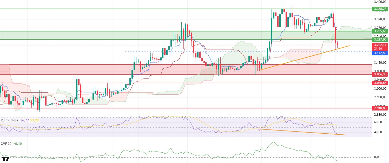 There is a sharp cooling el the momentum side. The Relative Strength Index (RSI) has fallen to 37 levels. Despite this, the positive divergence forming el the RSI side is noteworthy. If the ETH price can hold at the $3,200 level, this divergence could strengthen the possibility of a short-term rebound.