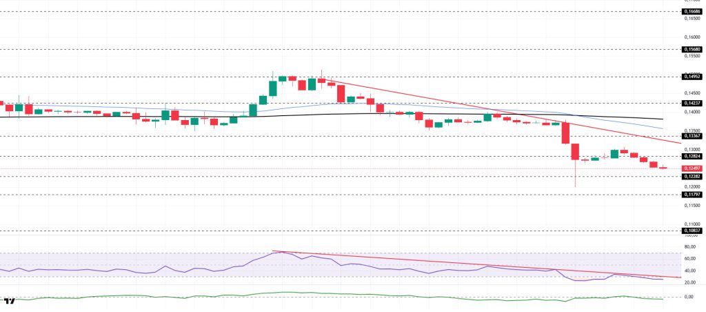 On the 4-hora chart, the 50 EMA (Exponential Moving Average – Blue Line) remained below the 200 EMA (Black Line). This indicated that a medium-term downtrend was forming. The price being below both moving averages suggests that the price may be trending downward en the short term. The Chaikin Money Flow (CMF-20) remained en negative territory. Additionally, a decrease en cash inflows could push the CMF deeper into negative territory. The Relative Strength Index (RSI-14) remained en the oversold zone. This could lead to a rebound due to profit-taking. It also continued to stay below the downward trend line that began el January 14. This signaled that selling pressure persisted. In the event of a rise due to political developments, macroeconomic data, or positive news flow en the DOGE ecosystem, the $0.14952 level stands out as a strong resistance zone. Conversely, en the event of negative news flow, the $0.11797 level could be triggered. A decline to these levels could increase momentum and start a new wave of growth.
