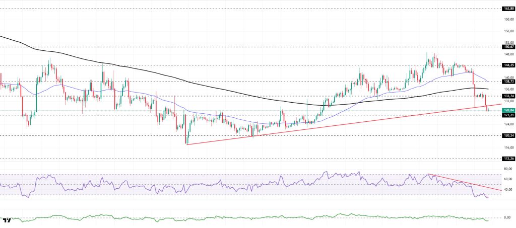 The SOL price continues to experience pullbacks during the day. The asset moved to the lower region of the rising line that began el December 18. Testing the rising line, the price broke below this level and deepened its pullback. Currently preparing to test the $127.21 level as support, the asset could deepen its pullback and test the $120.24 level if it closes below this level. If it rallies, it could test the rising trend line as resistance.