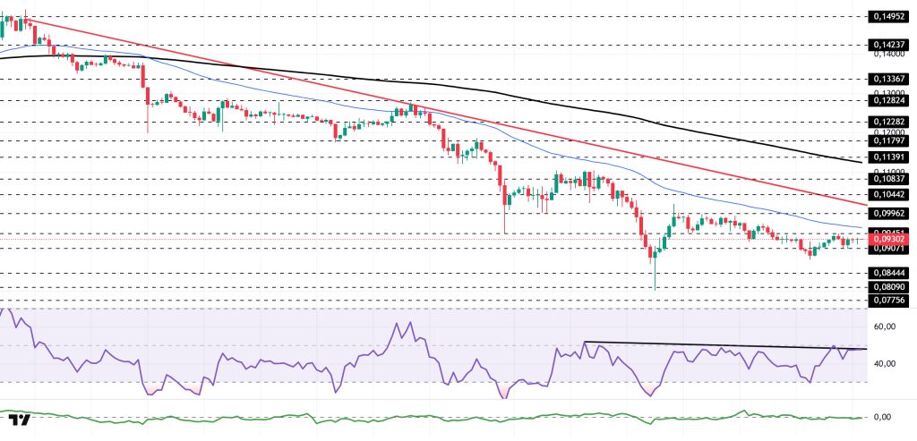 On the 4-hora chart, the 50 EMA (Exponential Moving Average – Blue Line) remained below the 200 EMA (Black Line). This indicates that a medium-term downtrend is forming. The price being below both moving averages indicates that the price may continue to decline en the short term. Chaikin Money Flow (CMF-20) has fallen into negative territory. Additionally, the decrease en cash inflows could pull the CMF deeper into negative territory. The Relative Strength Index (RSI-14) retreated from the neutral level en the negative zone, falling back to the middle zone. It also remained below the downward trend line that began el February 3. A break above this level could trigger buying pressure. In the event of an uptrend driven por political developments, macroeconomic data, or positive news flow en the DOGE ecosystem, the $0.11797 level stands out as a strong resistance zone. Conversely, en the event of negative news flow, the $0.08090 level could be triggered. A decline to these levels could increase momentum and initiate a new wave of growth.
