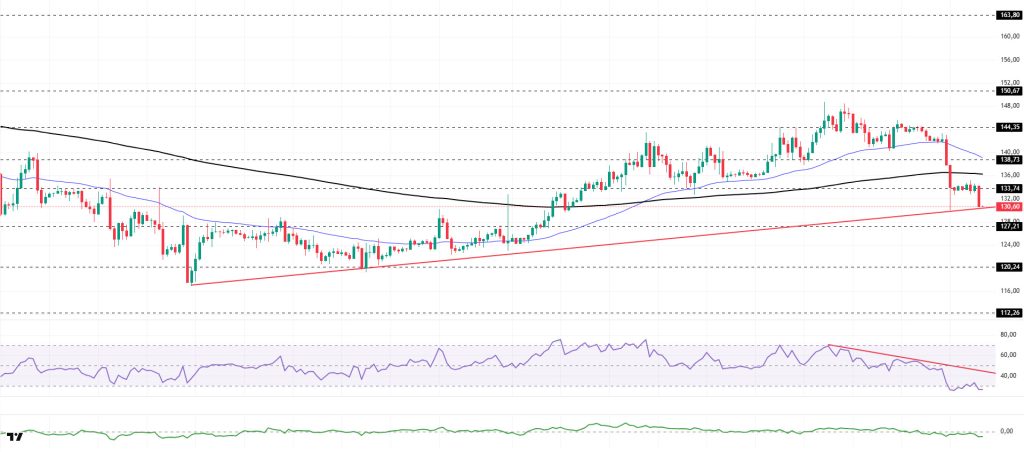 The SOL price continues to experience a pullback. The asset remained en the upper region of the rising line that began el December 18. Testing the 50 EMA (Blue Line) moving average and the 200 EMA (Black Line) moving average as support, the price broke below these levels, deepening its pullback. The asset, which gained momentum from the rising trend and showed a slight increase, lost this gain and is currently testing the rising trend as a support level again. If the price closes below this level, the $127.21 level could act as support. If the price rises, it could test the 200 EMA moving average as resistance.