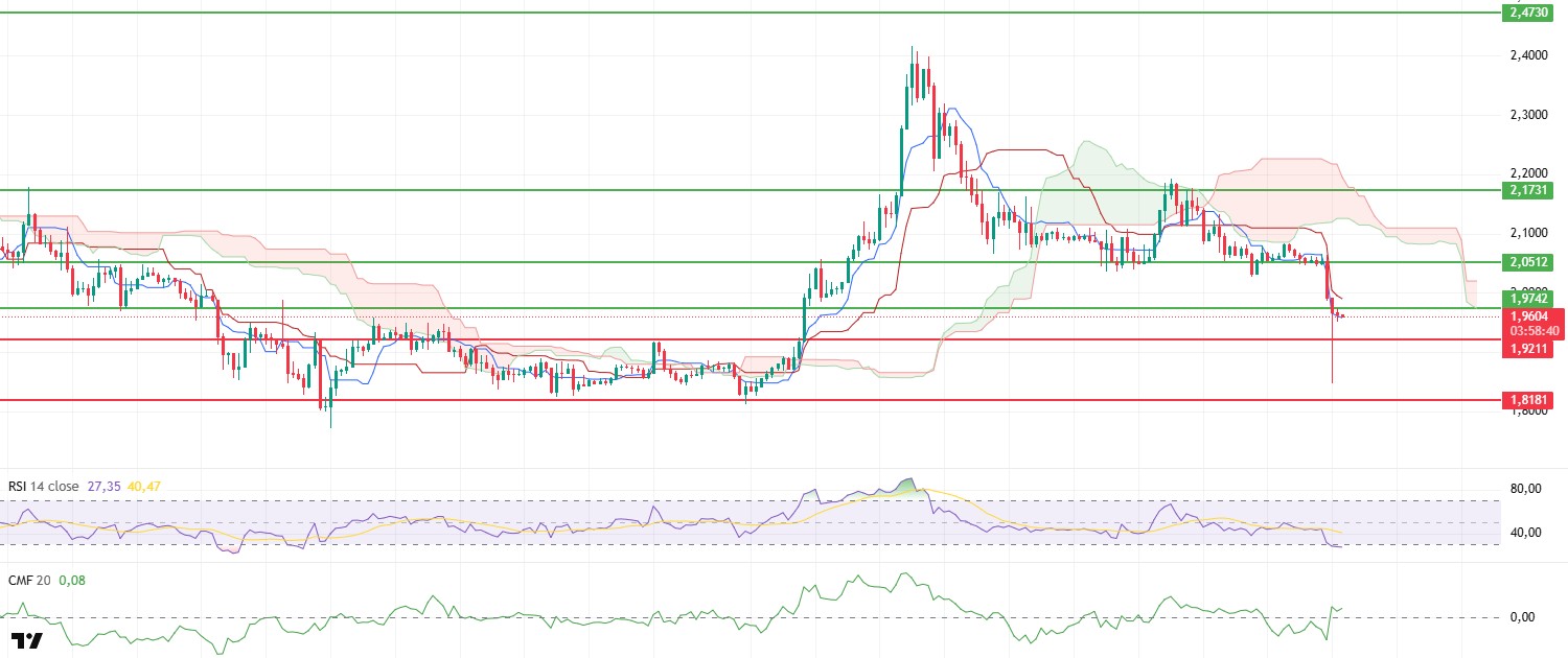 The XRP price attempted to recover to the $2.03 level yesterday evening. However, this rise was not sustainable, and with appetite weakening el the spot side, selling resumed. Following the pullback, the price dropped to around $1.95. The current outlook indicates that the rebound from the bottom is not yet complete, but buyers are still unable to confidently take the lead.