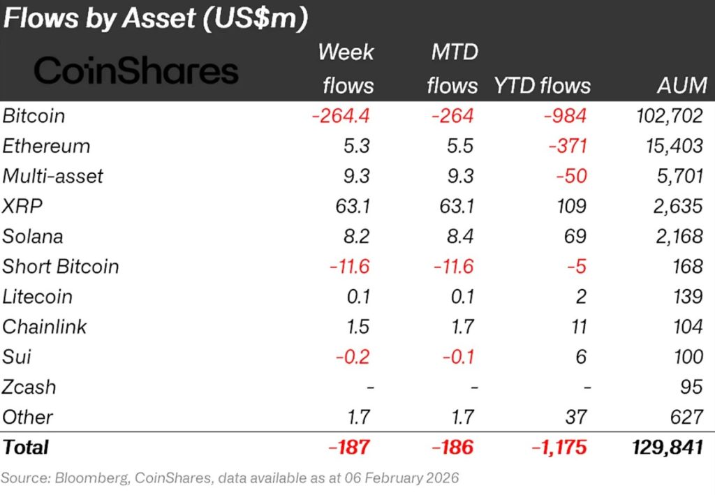 - Bitcoin (BTC):Bitcoin está experimentando salidas significativas de inversores esta semana. Los fondos centrados en Bitcoin vieron salidas de 264.4 millones de $.