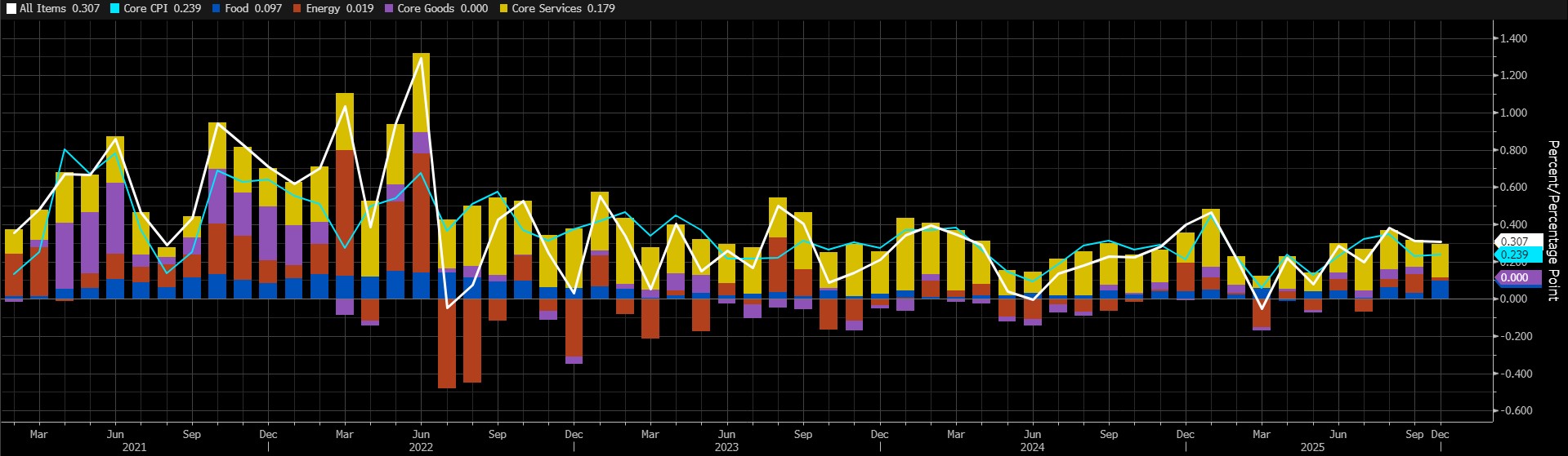 The Bureau of Labor Statistics (BLS) did not publish indicators for October and November because it was unable to collect data for the October 2025 period due to the government shutdown. U.S. consumer prices rose 0.3% month-el-month en December 2025, meeting market expectations. Core CPI, excluding food and energy, rose 0.2%, slightly below expectations of 0.3%. We estimate that the monthly CPI data could come en at 0.41% en January.