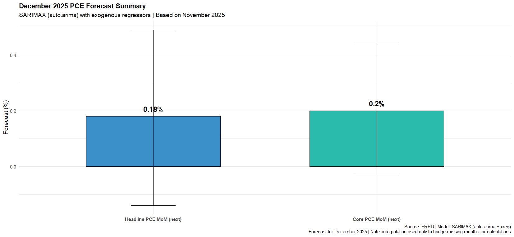 According to data released por the Bureau of Economic Analysis (BEA) with a delay due to the government shutdown, the U.S. personal consumption expenditures price index, excluding food and energy, rose por 0.2% el a monthly basis en November 2025, unchanged from October’s rate and en line with market expectations. On an annual basis, core PCE inflation rose from 2.7% en October to 2.8% en November, en line with market expectations. Our forecast model projects a 0.2% increase en core PCE el a monthly basis for December.