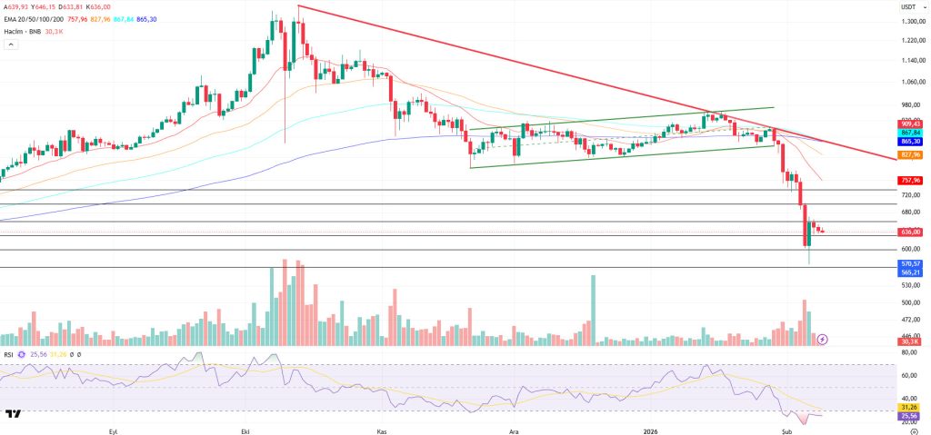 From a technical perspective, BNB, which had been strengthening its upward momentum for some time, surpassed its previously set target levels and reached the $950 threshold. Facing pressure at these levels, it gained downward momentum, remaining below the ongoing downtrend.