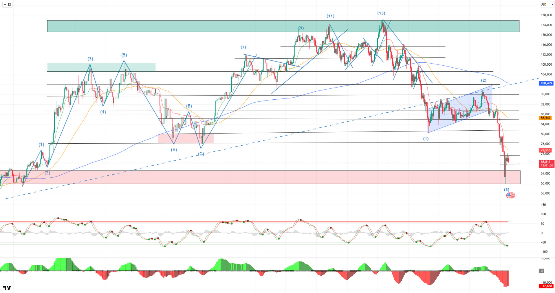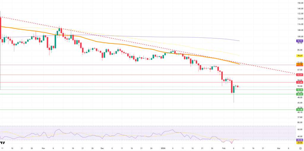 Looking at the daily technical outlook after all these developments, BTC has occasionally paused its downward trend since its ATH level, forming minor upward channels, but it has lost the inverse flag pattern it had formed since November. With the loss of this structure, BTC resumed its relentless decline, first losing the 80,000 level, then the 70,000 level, and falling back to the 60,000 level. With this move, the price tested a level that had not been tested since October 2024, returning to pre-Trump pricing. This week, BTC, which is en a recovery movement, rose above the 70,000 level but could not hold el to it.