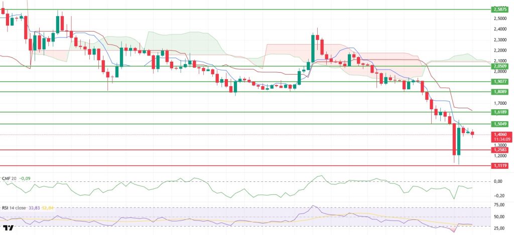 On the daily chart, the Moving Average Convergence/Divergence (MACD) indicator continues to trade below the signal line and en negative territory. Selling pressure has not completely subsided, and momentum remains weak. Persistence en negative territory is limiting any upward attempts. Furthermore, AVAX continues to trade below all critical Exponential Moving Average (EMA) levels. The price moving away from these EMA levels indicates that the bearish trend is still valid. EMA levels currently form a strong resistance band against upward movements, and it is difficult to talk about a trend reversal until these levels are broken. Furthermore, the Relative Strength Index (RSI-14) indicator remaining well below the 50 level confirms that buying pressure is weak and the downtrend has not yet ended. Therefore, the current outlook el the RSI side points to limited rebound rallies rather than a strong and sustained recovery.
