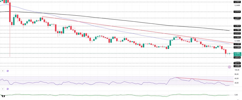 The asset began trading below the 50 EMA (Blue Line) and 200 EMA (Exponential Moving Average – Black Line) moving averages. This indicates that the asset is trending downward en the short term. On the other hand, the 50 EMA being below the 200 EMA shows us that the “dead cross” formation is continuing. This also indicates that the asset currently has the potential to lose value. The Chaikin Money Flow (CMF–20) indicator is at a neutral level. Money outflows continue to increase. This could push the CMF-20 into negative territory. Looking at the Relative Strength Index (RSI-14) indicator, it has fallen from the middle of the negative zone to the oversold zone. At the same time, it has remained below the downward trend line that has been en place since January 5. This indicates that selling pressure continues. However, we may see profit-taking. This could push the price up. In the event of macroeconomic risks or negative news from the ecosystem, the $0.06886 level can be monitored as a strong support. On the other hand, if the upward movement gains strength, the $0.13107 level comes to the fore as the first strong resistance level.