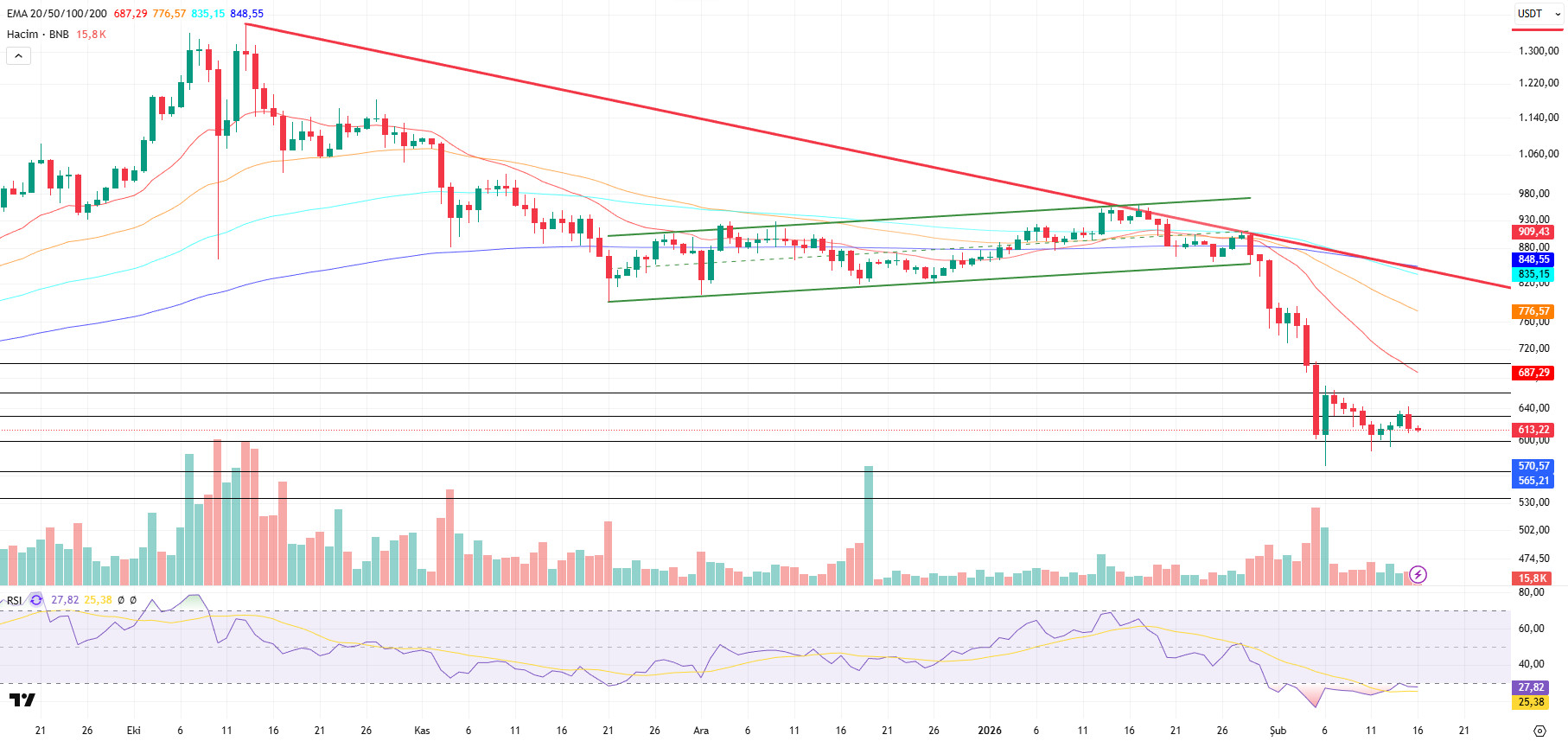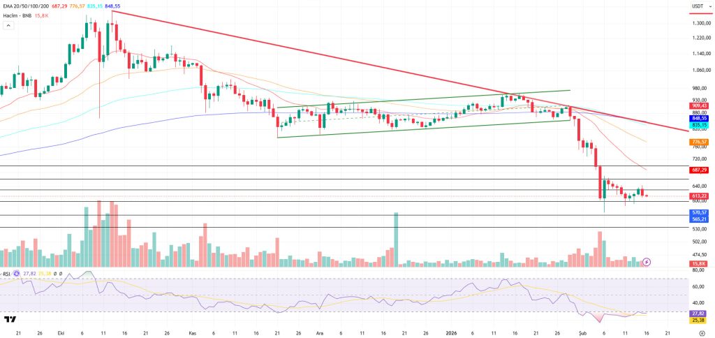Los indicadores técnicos para el activo, que actualmente se negocia en el rango de $600-$630, muestran que el volumen de operaciones en declive está apoyando el impulso de retroceso. Además, el Índice de Fuerza Relativa (RSI) cayendo por debajo del nivel 30 se considera un dato crítico que confirma la perspectiva técnica actual.