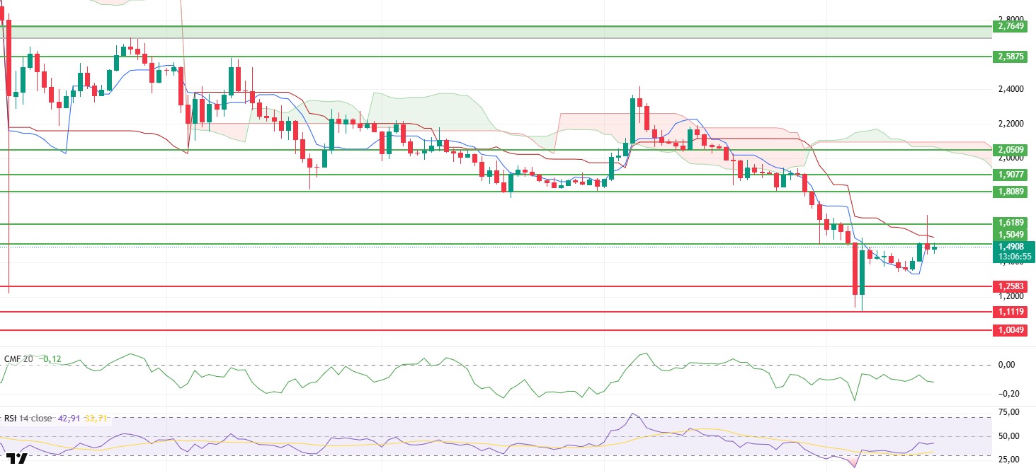 Tras la fuerte venta de la semana pasada, el precio de XRP fluctuó a lo largo de la semana. El precio primero retrocedió a la región de $1.34, manteniendo su perspectiva débil. Comprar en este nivel llevó a un fuerte rebote hacia el final de la semana, empujando el precio hasta $1.67. Sin embargo, este aumento no fue sostenible, y con la fuerte venta que siguió, XRP cayó nuevamente por debajo del nivel de $1.50. La estructura actual muestra que los movimientos al alza aún no son convincentes y que el mercado sigue siendo frágil. En el lado fundamental, las nuevas integraciones de Ripple con Securosys y Figment son notables. La adición de módulos de seguridad de hardware a la plataforma de custodia institucional tiene como objetivo reducir la carga de infraestructura para bancos y custodios. Este desarrollo podría verse como positivo para la adopción institucional a largo plazo. Sin embargo, aún no ha tenido un impacto decisivo en el comportamiento del precio a corto plazo. La dinámica de liquidez sugiere que el movimiento reciente no es saludable. El Chaikin Money Flow (CMF) permanece en territorio negativo, mientras que los datos de CVD spot también siguen siendo débiles, lo que indica que el reciente aumento fue impulsado principalmente por movimientos de posiciones del lado de futuros. Esta estructura apunta a que el movimiento tiene el carácter de una caza de liquidez y sugiere que los repuntes podrían ser frágiles mientras el soporte spot siga siendo débil. La imagen del momentum es cautelosa. Aunque el Índice de Fuerza Relativa (RSI) ha salido de la zona de sobreventa, no ha logrado generar un fuerte momentum y permanece en la zona débil. Esta perspectiva confirma que los compradores aún no han establecido un control duradero en el mercado. El indicador Ichimoku mantiene su debilidad general. Mientras el precio permanezca por debajo de los niveles de Tenkan y Kijun, la nube kumo aún no ha sido recuperada. Esta estructura técnica indica que la tendencia principal es a la baja y que los movimientos al alza pueden seguir siendo reactivos por ahora.Los umbrales críticos permanecen sin cambios en la perspectiva general. Un movimiento ascendente podría recuperar fuerza si se rompe el nivel de $1.50 con volumen y se mantiene por encima. Por el contrario, se espera que la presión de venta continúe mientras esta región permanezca sin romper. En la parte inferior, el nivel de $1.25 es el principal soporte, y el riesgo de una nueva profundización de la caída sigue sobre la mesa si se pierde este nivel. Soportes:1.2583 – 1.1119 – 1.0049Resistencias: 1.5049 – 1.6189 – 1.8089