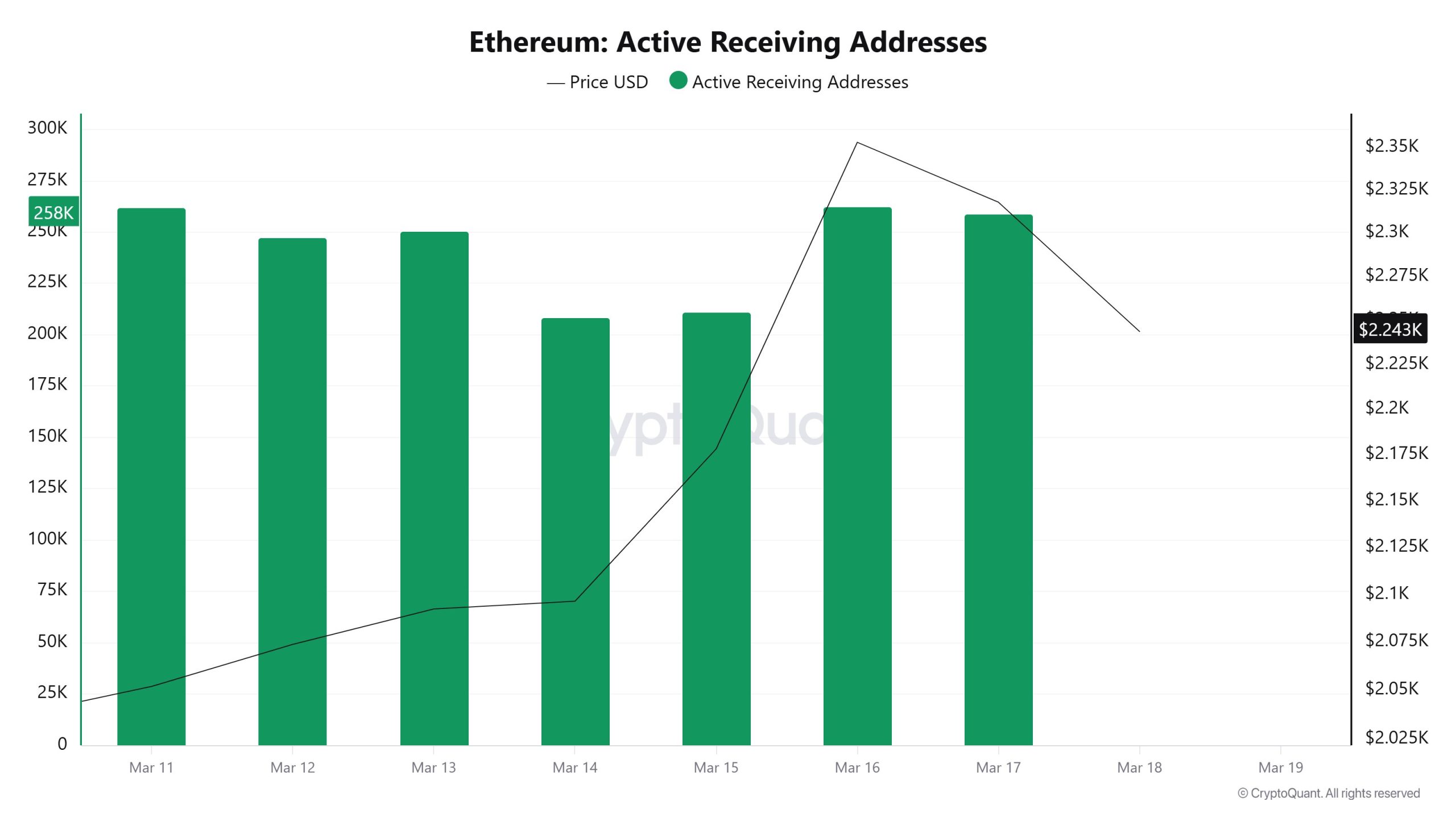The number of receiving addresses starts at a strong level around 250K at the beginning of the week. It drops significantly toward March 14, falling to the 200K range. At this point, there is a brief slowdown in new entries to the network. However, a recovery follows after March 15, reaching levels around 260K. In other words, the inflow side has not weakened; there was merely a brief pause. The fact that it regains momentum alongside the price increase further supports this.