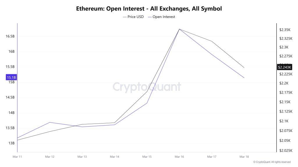 Open Interest followed a relatively flat trend until March 13, then saw a very strong surge between March 14 and 16, reaching a peak. This indicates that new positions entered the market and interest increased. However, after the peak, both price and OI decline together. This is an important detail. Because this situation indicates that existing positions are being closed rather than new capital entering the market. In other words, the market is easing up a bit, and leverage is decreasing.