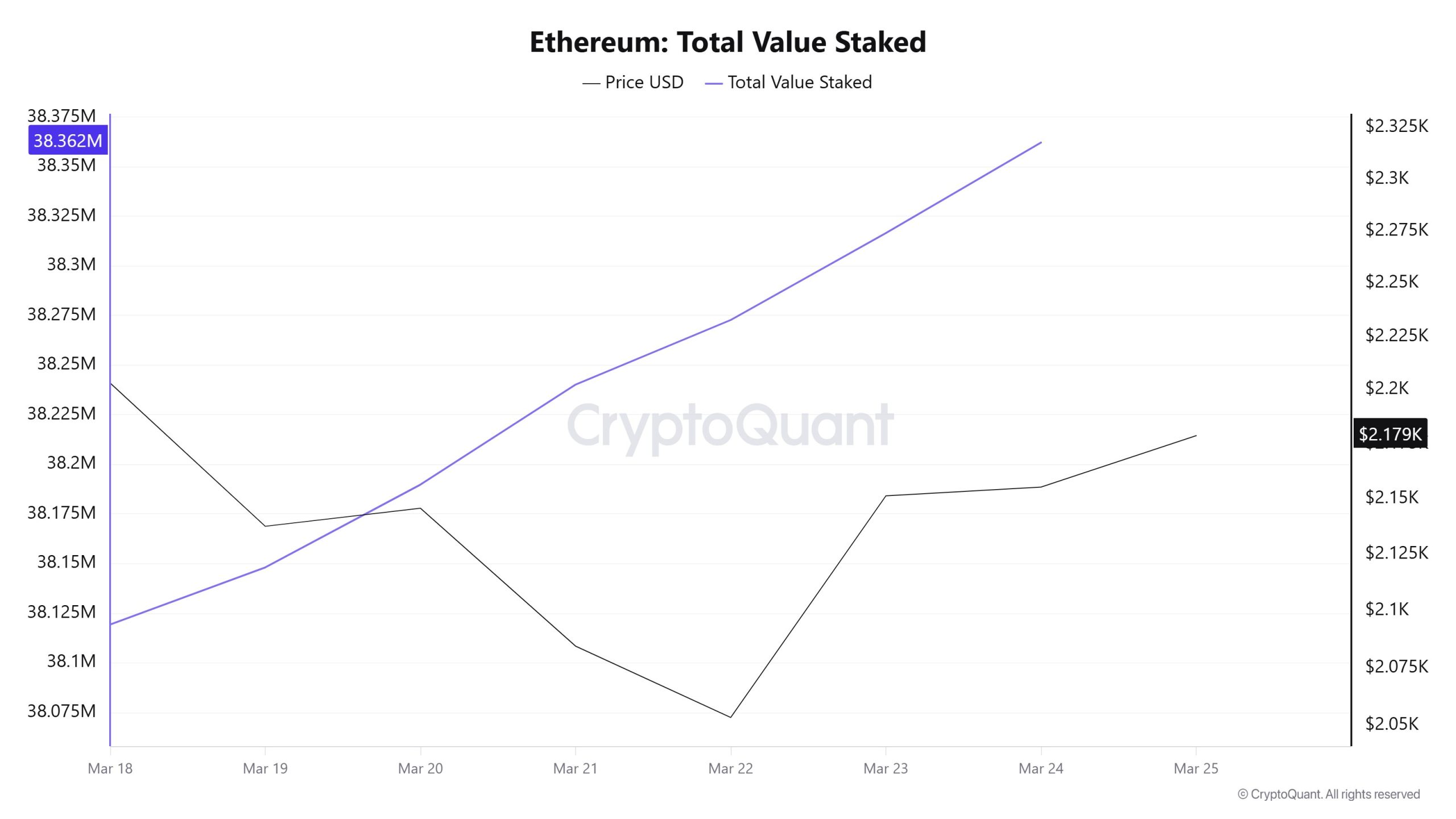 The total amount of ETH staked increased steadily throughout the week. Starting at 38.12 million, the figure rose to 38.35 million by the end of the week.