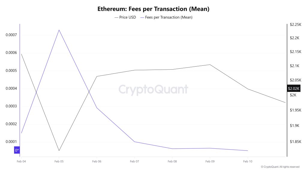 When examining the Ethereum Fees per Transaction (Mean) data between February 4 and 10, it is seen that on February 4, the first day of the week, the indicator reached 0.000149924942568988.