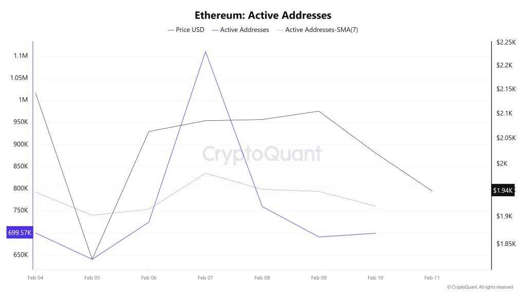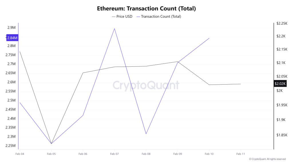 Between February 4 and February 11, a total of 1,110,779 active addresses were added to the Ethereum network. During this period, the Ethereum price retreated from $2,086 to $1,823. Notably, on February 5, when the price reached the active address point, the number of active addresses increased while a significant rise was also observed at the price point. When examining the 7-day simple moving average (SMA), it is seen that the Ethereum price is generally trending downward.