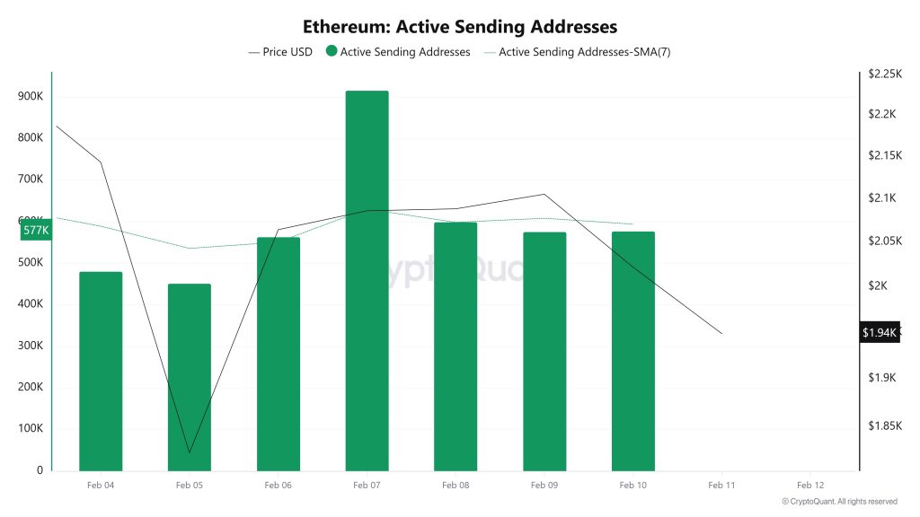 Between February 4 and February 11, high levels of active sending activity were observed in active sending addresses along with the Black Line (price line). On the day the price reached its highest level on a weekly basis, active sending addresses reached 915,156.