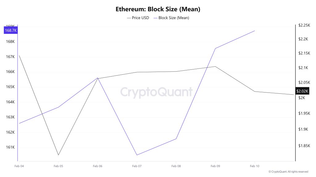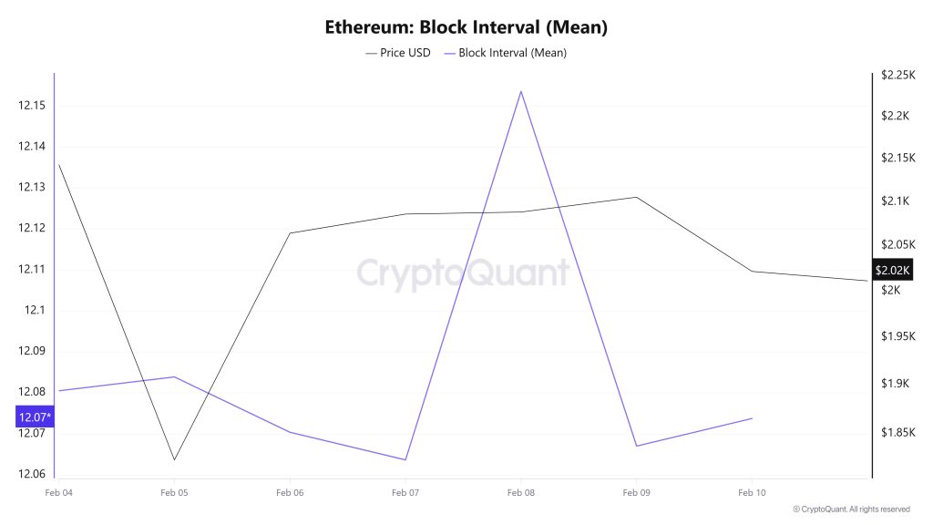 When examining the Ethereum block time between February 4 and 10, a slight decrease was observed throughout the week. While the average block time was recorded as 12.08 seconds on February 4, this time decreased to 12.07 seconds as of February 10.