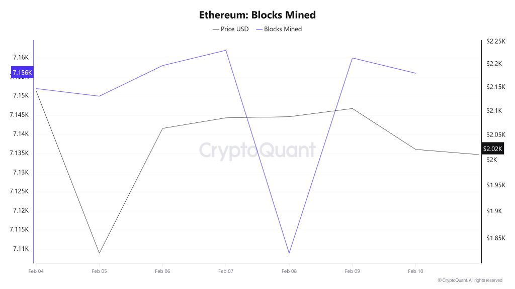 When examining Ethereum block production data between February 4 and 10, an increase was observed throughout the week. While 7,152 blocks were produced on February 4, this number rose to 7,156 by February 10.