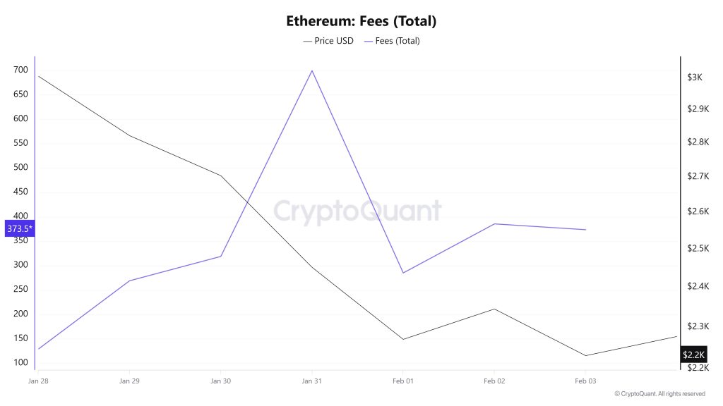 Similarly, when examining the Ethereum Fees (Total) data between January 28 and February 3, it can be seen that on January 28, the first day of the week, the indicator stood at 128.91511985925501.