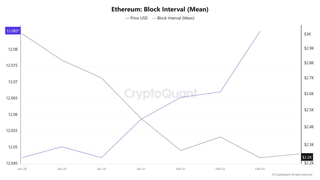 When examining the Ethereum block time between January 28 and February 3, an increase was observed throughout the week. While the average block time was recorded as 12.04 seconds on January 28, this time increased to 12.08 seconds as of February 3.